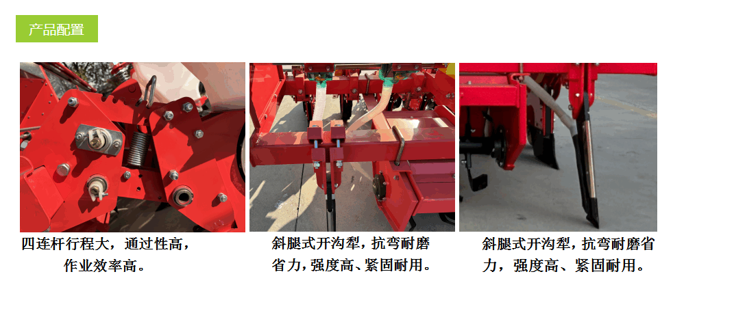 6、地輪采用單臂設計,有效避免纏繞、擁堵,各行傳動軸連成一體,統(tǒng)一驅動,傳動動力大,即使其中一側地輪偶然打滑也不影響正常播種:播種單體采用仿形設計,可隨地面上下浮動、可實現(xiàn)播深一致。